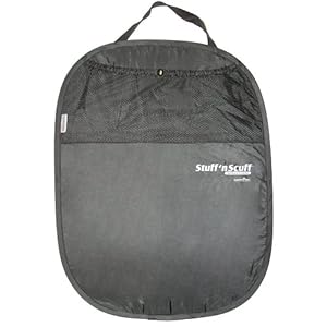 Organiseur, protecteur de dossier Stuff n Scuff 10230S Stuff n Scuff est lavable, résiste a l’eau et protege l arriere de votre siege avant des salissures causées par les chaussures des enfants. Stuff n Scuff se déplie et grâce a sont system pop-up, garde sa forme. Ce protege siege se fixe sur tout repose tete, il est reglable en hauteur et dispose en plus d une grande poche de rangement.